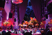 На сооруженную специально для корпоратива цирковую арену выходили высокопоставленные сотрудники, каждый в своей роли. Так, Герман Грефа приветствовал собравшихся верхом на коне. К празднику он не один день тренировался. В гусарском костюме Греф скакал на коне круг за кругом, крутился на скакуне вокруг, а под занавес заставил животное поклониться публике. На столах были всевозможные угощения - от холодных закусок до горячих блюд от местного шеф-повара.