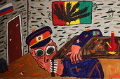 Российская власть продолжает воевать с искусством, а оно - с ней. В Перми проводится проверка серии работ петербургского художника Григория Ющенко "Волшебная психоделическая милиция". Начальство краевого ГУВД обиделось за честь мундира и пожаловалось на незаконное использование флага России. На фоне госсимвола сотрудники МВД давят прыщи, точат топоры и моют в молоке гениталии. А ведь автор просто хотел объяснить народу, отчего так зол милиционер, и не собирался рисовать фаллосы на мостах, как арт-группа "Война".