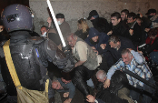 В ход пошли дубинки, резиновые пули, слезоточивый газ. Даже пластиковые щиты, предназначенные для защиты самих спецназовцев, использовались ими против молодых участников акции. Били по спинам, головам, ногам. Не церемонились, не проявляли даже элементарной осторожности. В появившихся сегодня телерепортажах - жуткие кадры: на одного сторонника оппозиции набрасываются полицейские, их много, и все одновременно не могут дотянуться до жертвы, поэтому суетятся вокруг и ждут своей очереди. Человек пытается увернуться от ударов, но его зажимают в угол и бьют ногами.