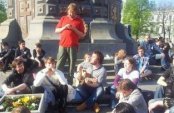 Как напоминает «Росбалт», бессрочный лагерь оппозиции разместился на Чистых прудах 9 мая утром, причем это второе появление оппозиционного лагеря на Чистопрудном бульваре, поскольку 8-го его разогнал ОМОН.