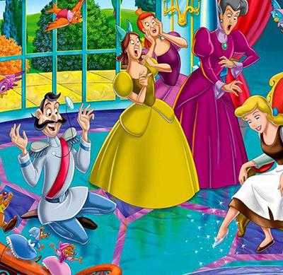 Если сравнить мультфильмы Диснея сравнить с оригинальными сказками, то будет заметно, как мало между ними общего. В диснеевской версии Золушка попадает на бал в образе прекрасной принцессы, теряет туфельку и потом принц ищет девушку, которой туфелька бы пришлась в пору. Находит Золушку и они живут вместе долго и счастливо.