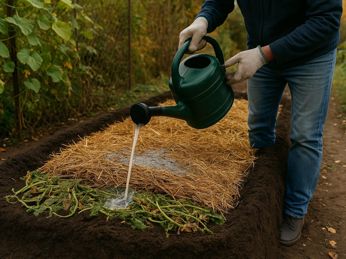 После полива стоит замульчировать землю перегноем или торфом — это поможет сохранить влагу и предотвратить растрескивание грунта.
