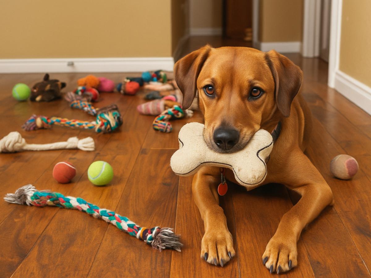 Добавлять игрушки постепенно, особенно если цель — активная или спортивная дрессировка.