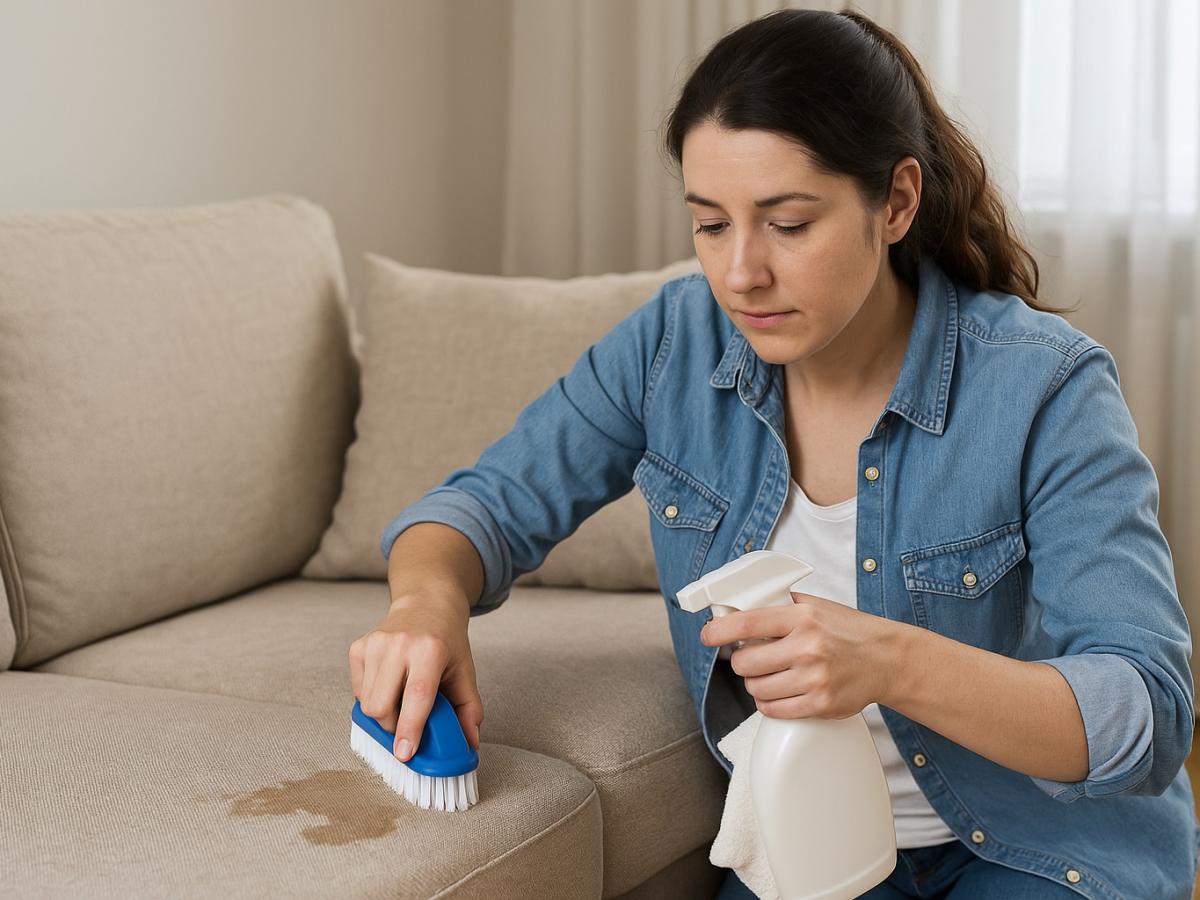 Достаточно распылить средство, оставить на несколько минут и затем промокнуть тканью.