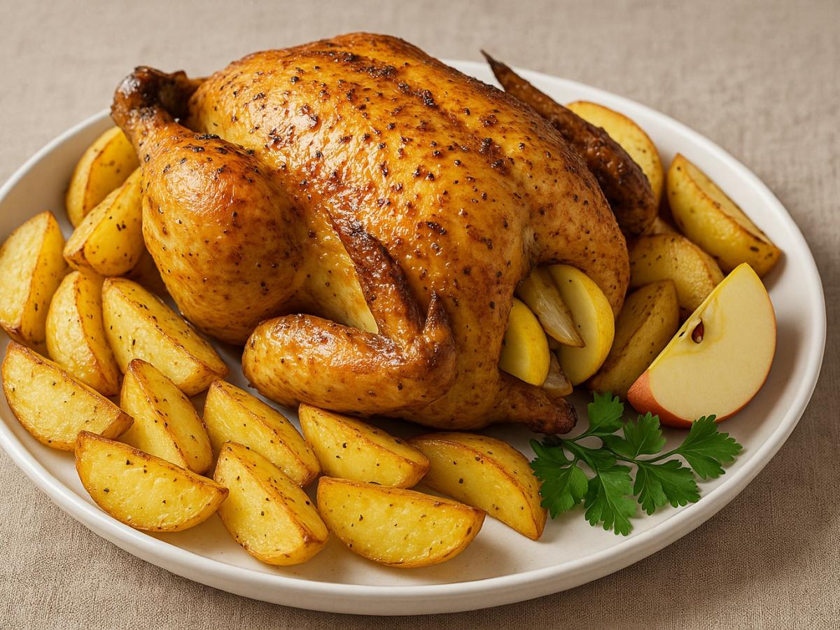 Курица, запечённая целиком на противне, — это блюдо, которое невозможно испортить, если знать несколько простых секретов. Она всегда выглядит эффектно, аромат распространяется по всему дому, а вкус — как у праздничного ужина. Хрустящая золотистая корочка, сочное мясо и аромат специй делают её идеальной как для семейного застолья, так и для гостей.