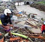 Так, в префектуре Симанэ, в городе Мацуэ, также из-за схода оползня, оказалась погребена под развалинами дома семья из трех человек. Сегодня утром спасателям удалось найти одного из детей, который получил травмы, но остался жив. Продолжаются поиски второго ребенка и матери. В городе Кани префектуры Гифу вышедшая из берегов река смела более 20 грузовиков и легковых машин. Два человека, находившиеся в автомобилях, числятся пропавшими без вести.