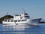 Сообщение о ЧП с катером поступило в МЧС в 3:30 (23:30 по Москве). На борту судна длиной 30 метров находится капитан и 13 человек пассажиров, детей среди них нет.