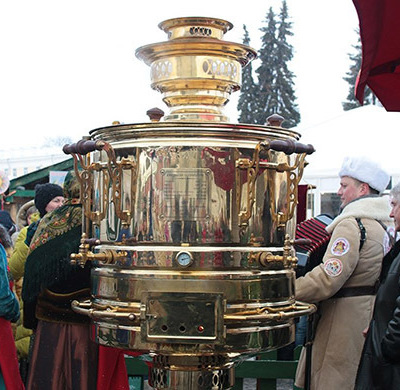 В Ярославле на фестивале "Главная масленица страны" было много удивительного, но больше всего поразил отдыхающих огромный блестящий самовар. Он оказался не только самым настоящим — на трубой вился дымок, а любой желающий мог угоститься ароматным чаем, но и самым высоким в России.