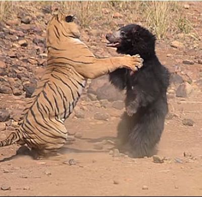По словам местного натуралиста Акшая Кумара, которого цититирует телеканал NDTV, начал драку Маткасур - семилетний тигр, который напал на медведицу, пришедшую к водопою вместе с детенышем.