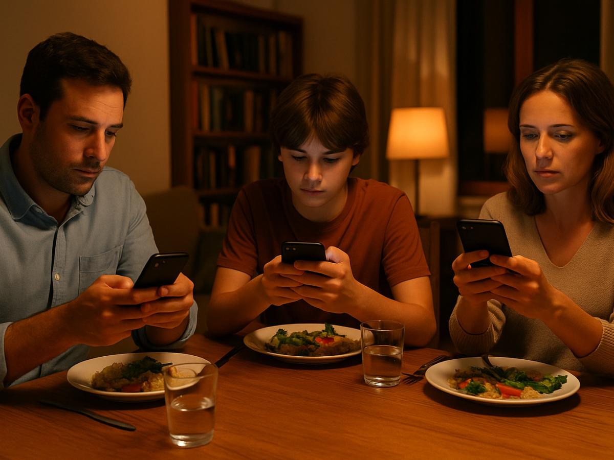 Семейное соглашение. Родители и дети договариваются о времени без устройств — ужин или вечер перед сном.