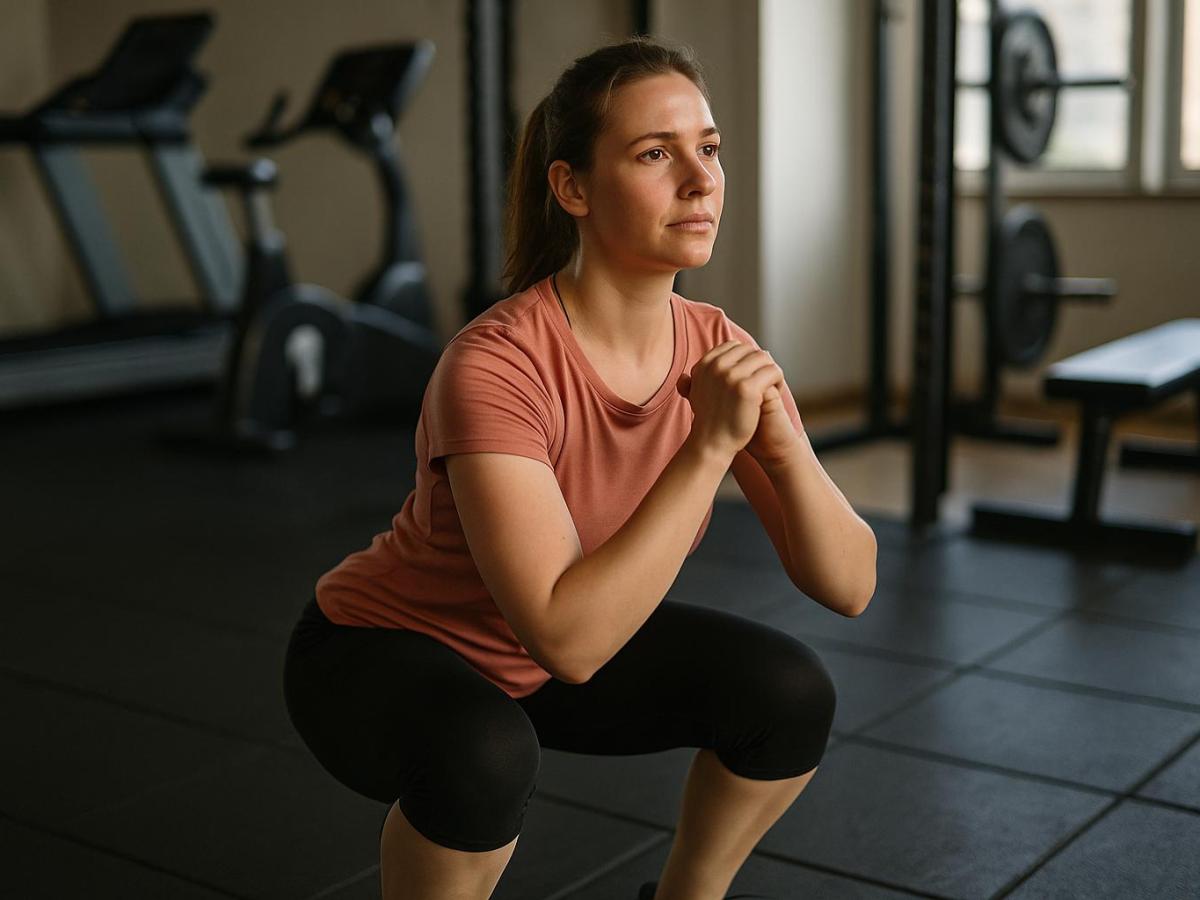 Даже при усталости важно держать корпус прямым, а колени не выводить вперёд за линию стоп. -
