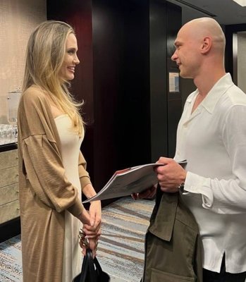 Анджелина Джоли тепло пообщалась с российским актером Юрой Борисовым на фестивале в Торонто