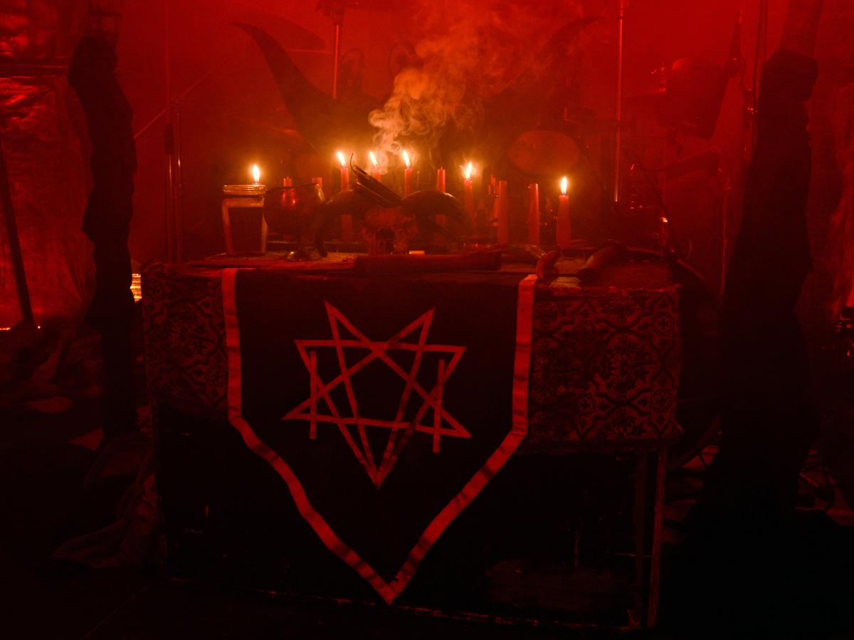 Агентство "Москва" опубликовало фотографии, на которых запечатлена фигура, составленная из тушек птиц и козлят, расположенных в виде геометрических узоров — круга и треугольника. В центре композиции видны остатки кострища, а на снегу вокруг неё - следы крови.