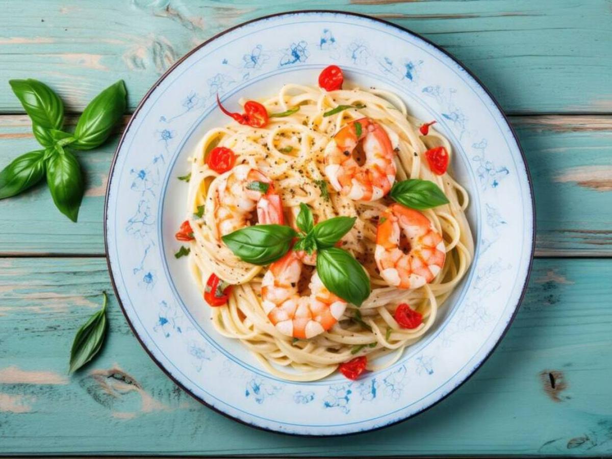 В Италии пасту с креветками традиционно подают только с белым вином — считается, что красное перебивает вкус моря.