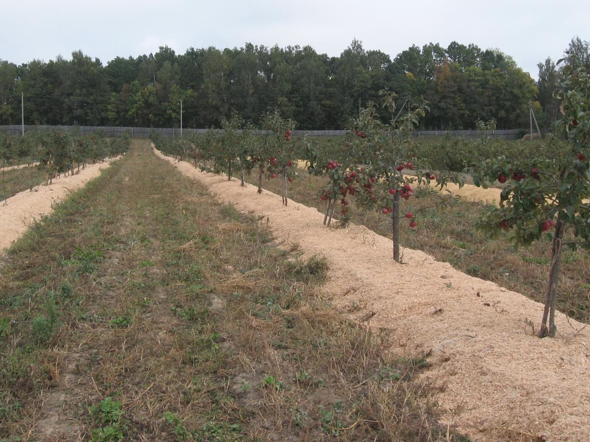 Клумбы рекомендуется мульчировать древесной стружкой, корой и торфом. Стволы деревьев покрываются крупной стружкой, корой или листьями.