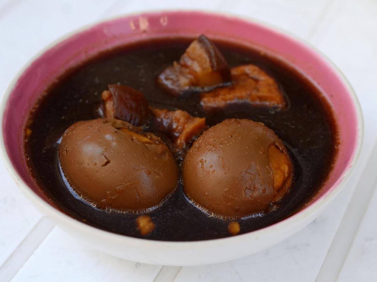 Совет: для более насыщенного цвета оставьте яйца в маринаде на 2 дня. Подавайте, нарезав половинками или дольками:
