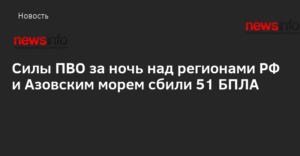 Ночью над регионами России и Азовским морем уничтожен 51 беспилотник