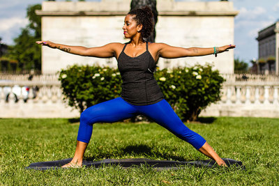 - Начните плавно опускать голову к правому плечу. Старайтесь дотянуться правым ухом до плеча.