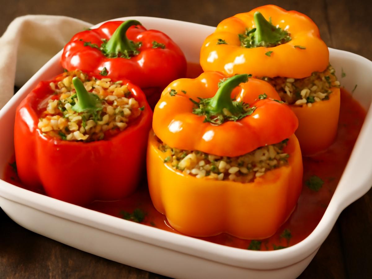 Фаршированные перцы — одно из тех блюд, которые пахнут домом и вызывают ностальгию с первой ложки. Сытные, ароматные, яркие — они одинаково хороши и для семейного ужина, и для уютного обеда. Приготовить их несложно, а результат неизменно радует: нежный перец, сочная начинка из мяса и риса, насыщенный томатный соус. Ни гарнира, ни лишней суеты — всё в одном блюде.