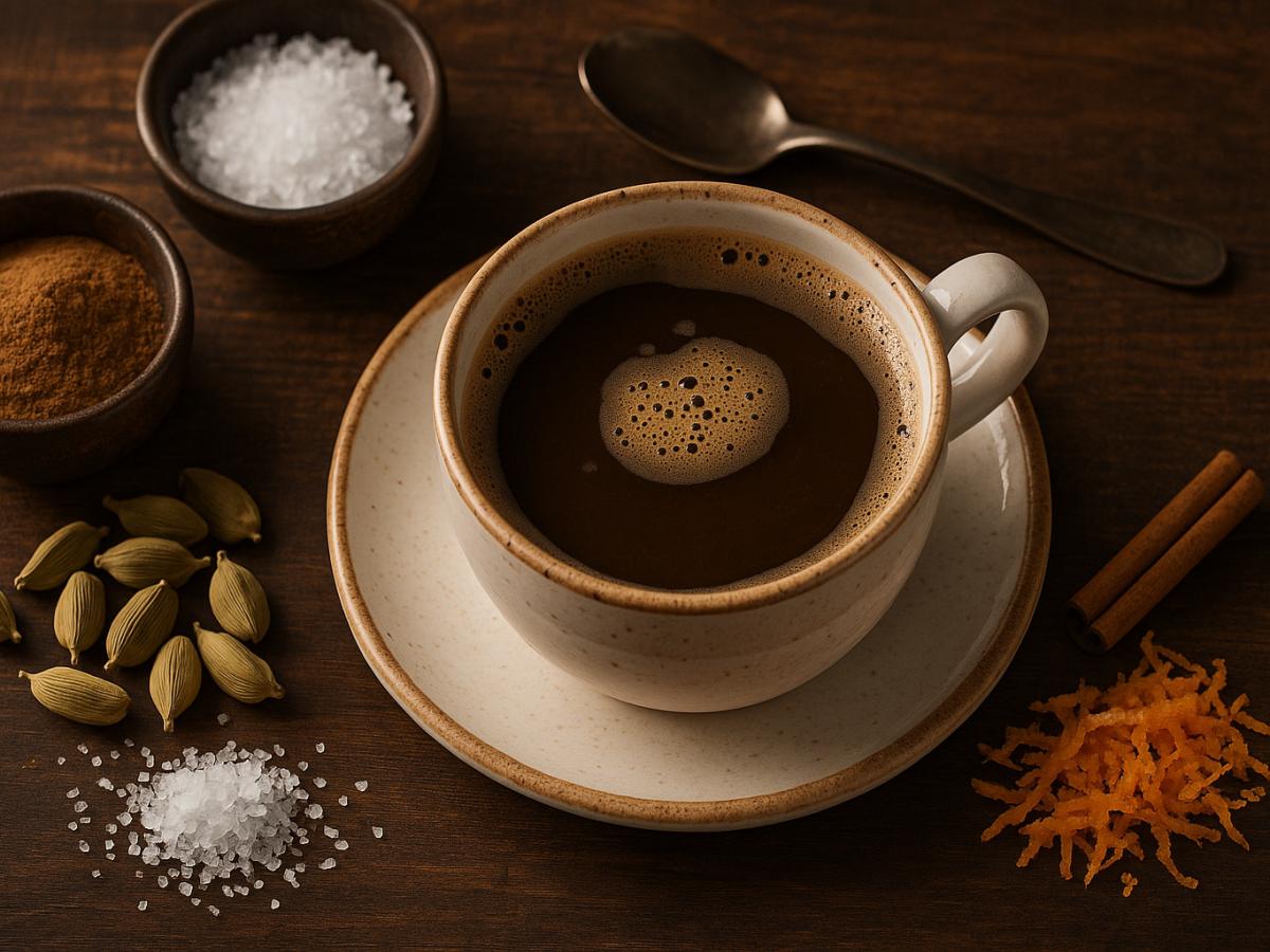 Молоко и специи. По желанию можно добавить в кофе молоко или специи, такие как кардамон, корицу или гвоздику. Эти добавки придают кофе особую ароматность и глубину вкуса.