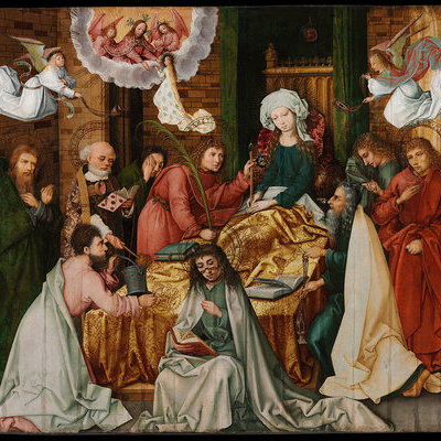Перед кончиной Богоматери в Иерусалим прибыли все апостолы, за исключением Фомы. Они перенесли тело Девы Марии в Гефсиманский сад, где ранее упокоилась ее мать, праведная Анна. Во время погребения апостолы узрели самого Иисуса Христа, который забрал душу своей матери на Небеса.