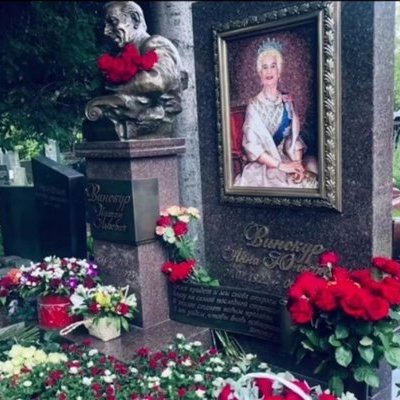 На фото запечатлено богатое захоронение с величесвенными памятниками. Мама Винокура изображена на большом портрете в королевском образе.