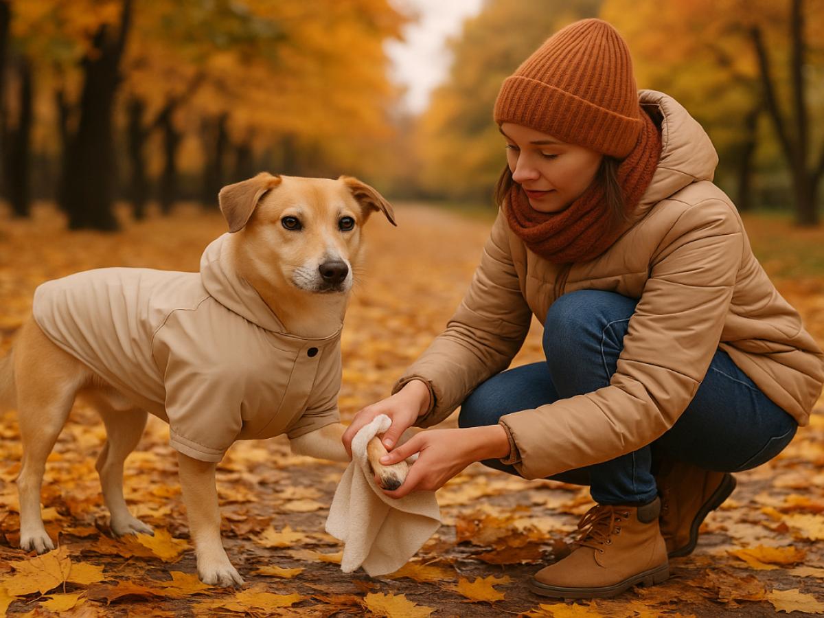 - Возьмите с собой сухие салфетки или полотенце, чтобы протереть собаку прямо на улице.