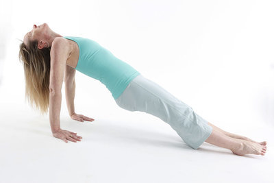 Б. Сложите ладони вместе в молитвенной позе на позвоночнике и поднимите руки как можно выше к позвоночнику. Отведите локти назад так, чтобы предплечья образовали одну линию.